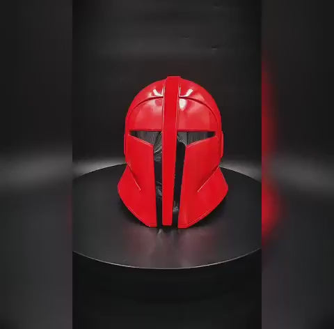This Imperial Praetorian helmet is a full-size replica inspired by Supreme Leader Snoke's elite guard from Star Wars: The Last Jedi and The Mandalorian . The helmet is finished in a glossy red, with a sleek, streamlined design and a narrow visor opening for a recognizable, intimidating presence.