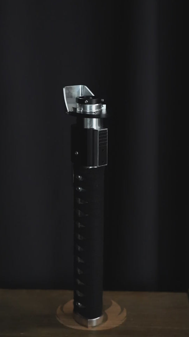 Beschreibung: Tanaka ist ein einfaches silbernes Schwert, das mit einer schwarzen Stoffhülle versehen ist. Dies verleiht dem Schwert ein typisches Katana-Aussehen. Der Emitter verfügt über einen katanaähnlichen Schild und hilft bei der Verteidigung. Darüber hinaus verleiht er ein sehr professionelles Aussehen. Die kantigen Formen um den Knauf und den Emitter verleihen dem Tanaka ein solides und robustes Aussehen.DasSchwertwird mit zwei Knöpfen bedient. Der Ladeanschluss befindet sich an der Innenseite der Unterseite des Schwertes, und das Schwert wird mit dem mitgelieferten Ladekabel aufgeladen.