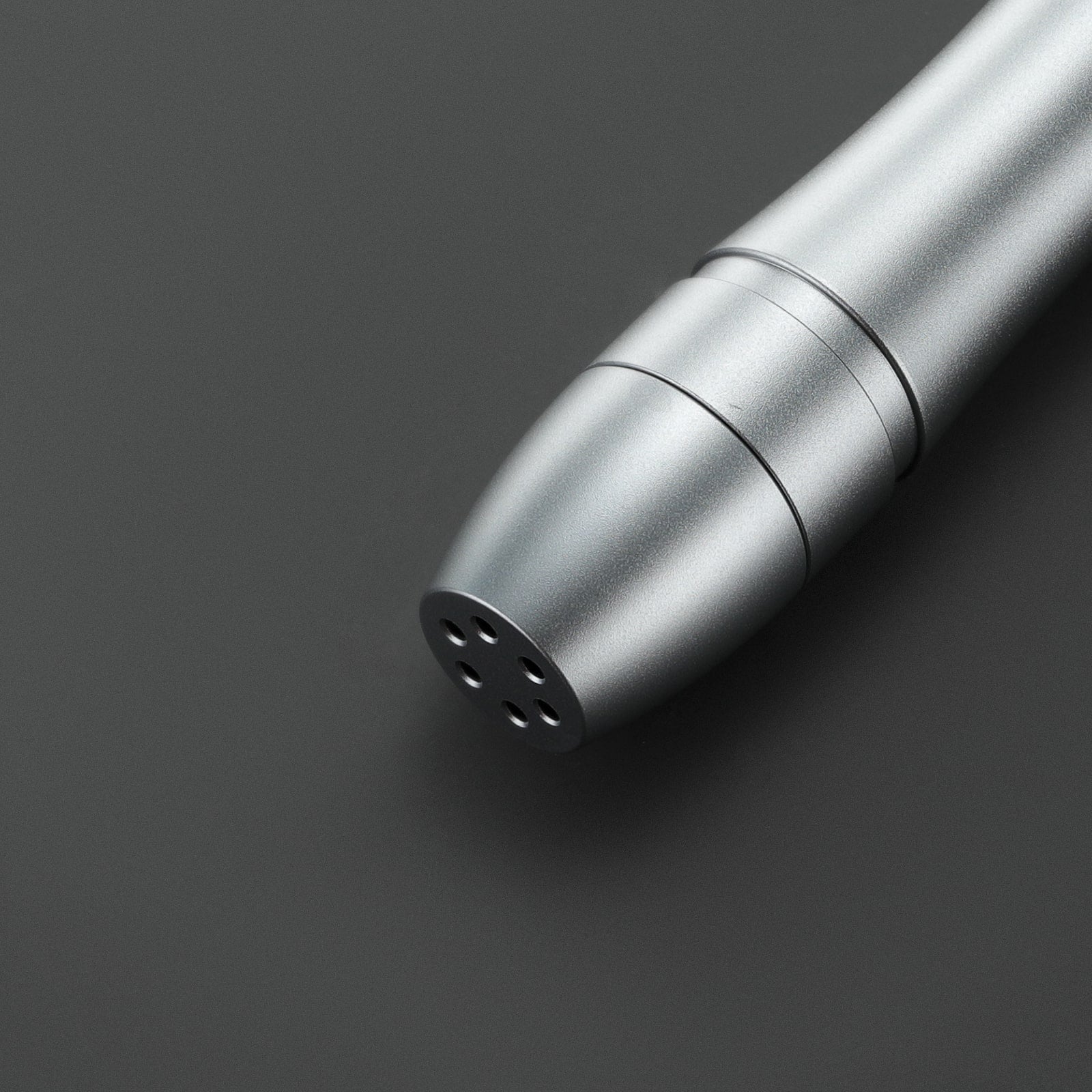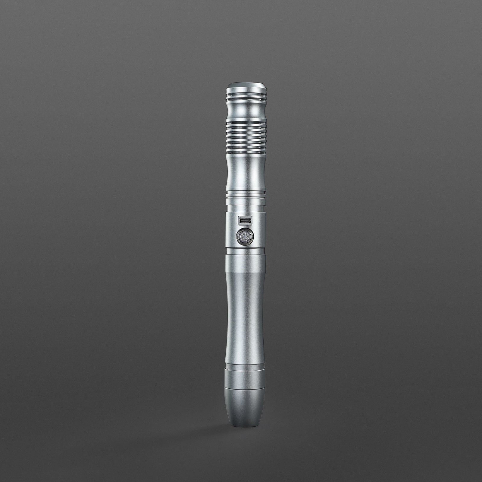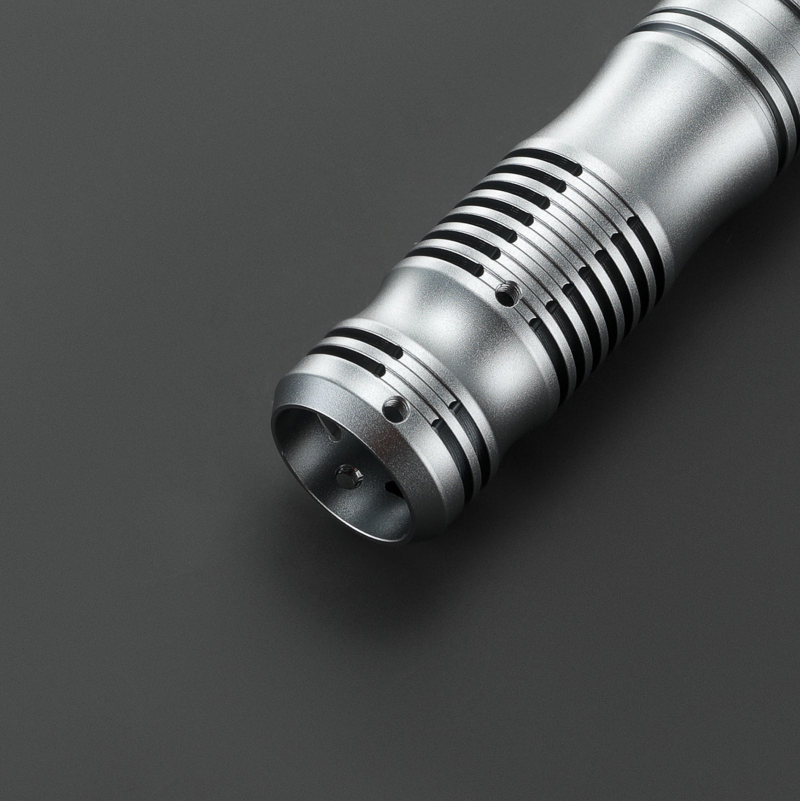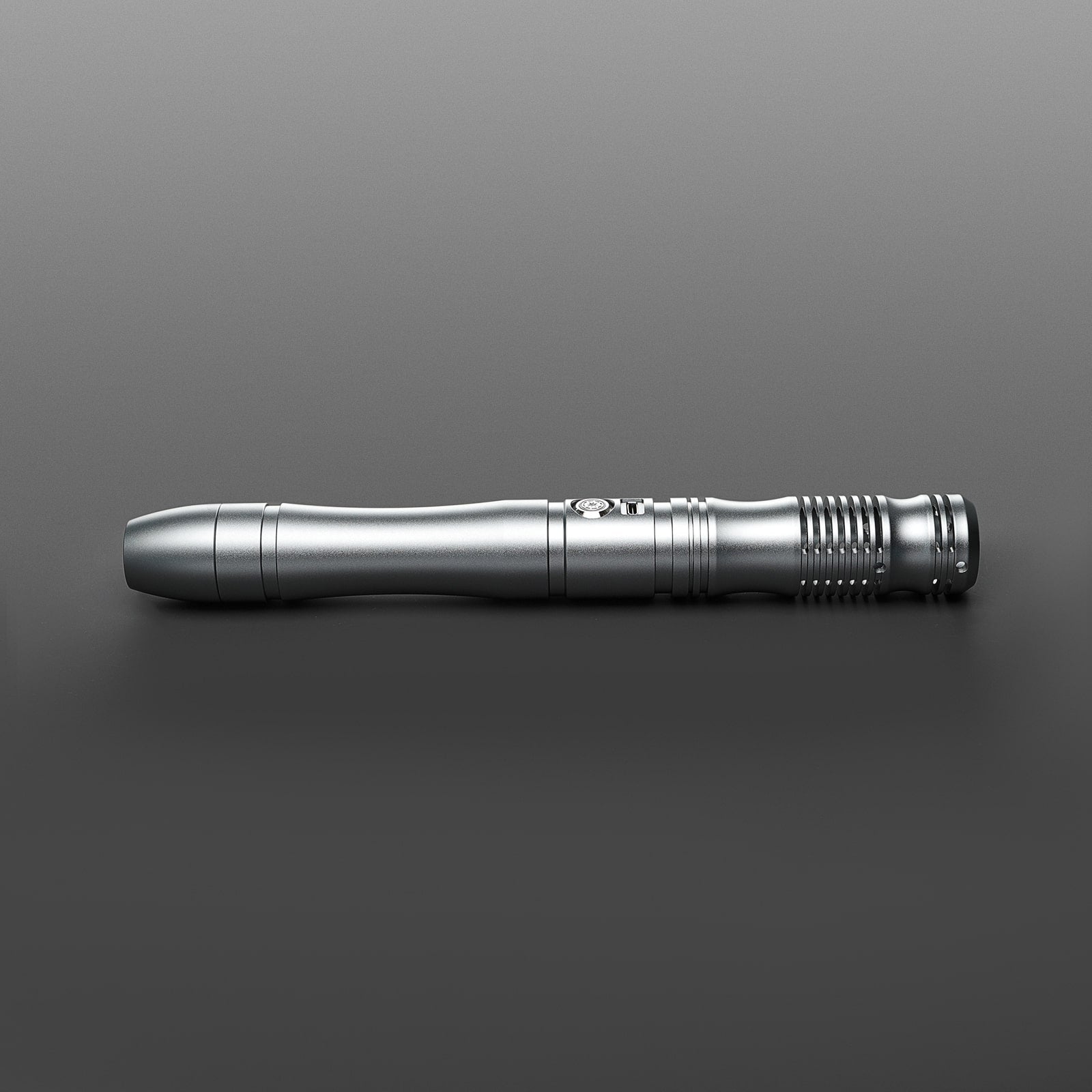 L'impugnatura di questa spada laser è realizzata in robusto alluminio ed è disponibile in due varianti di colore, nero opaco o argento/grigio scuro. L'impugnatura è leggera ma estremamente resistente. Il manico dell'Accolito ha un'impugnatura affusolata che lo rende comodo da tenere in mano. Il restringimento dell'impugnatura rende l'Acolyte ideale per lo spinning e adatto a mani piccole e grandi. Questo rende l'Acolyte particolarmente adatto all'uso quotidiano, alle rotazioni morbide e ai movimenti veloci.