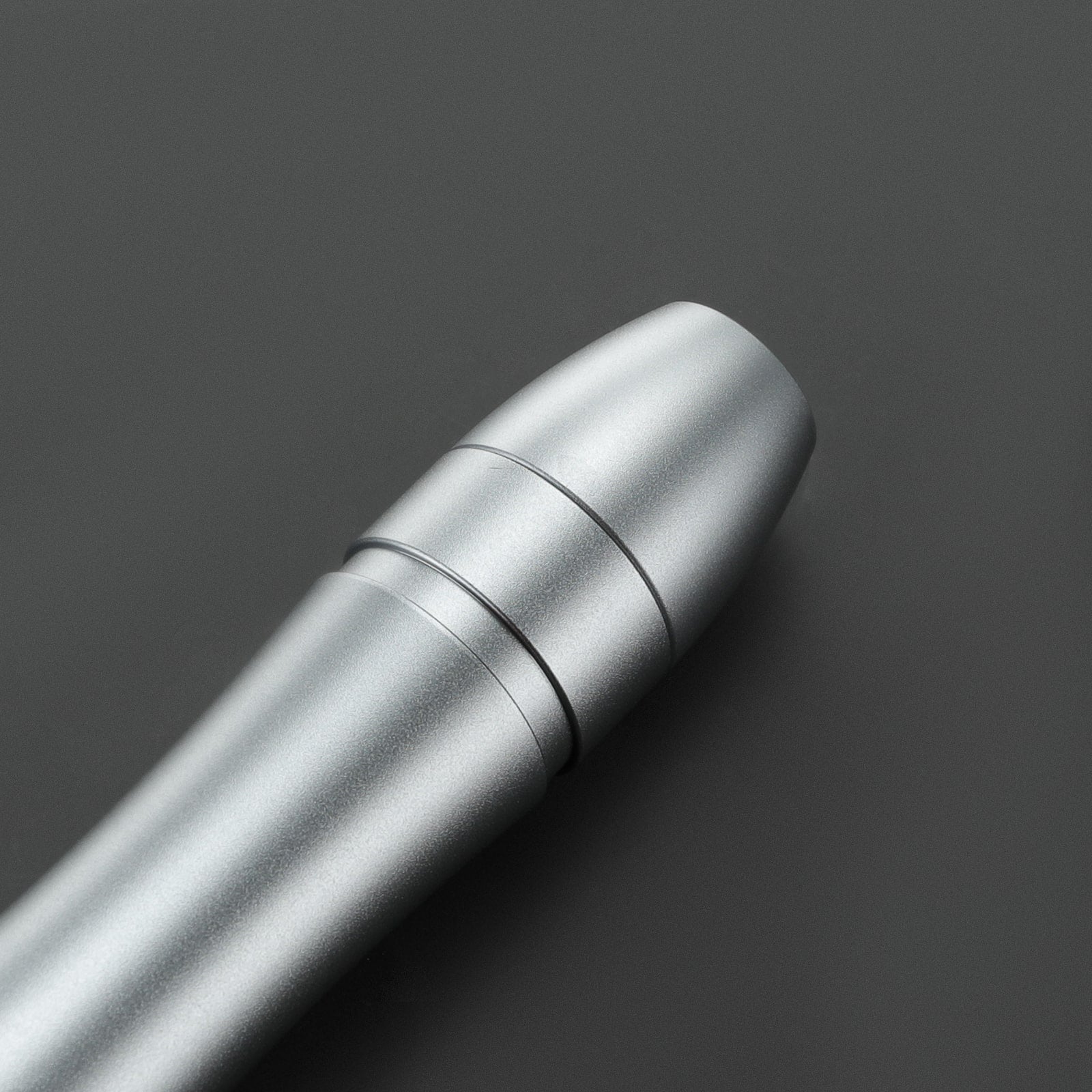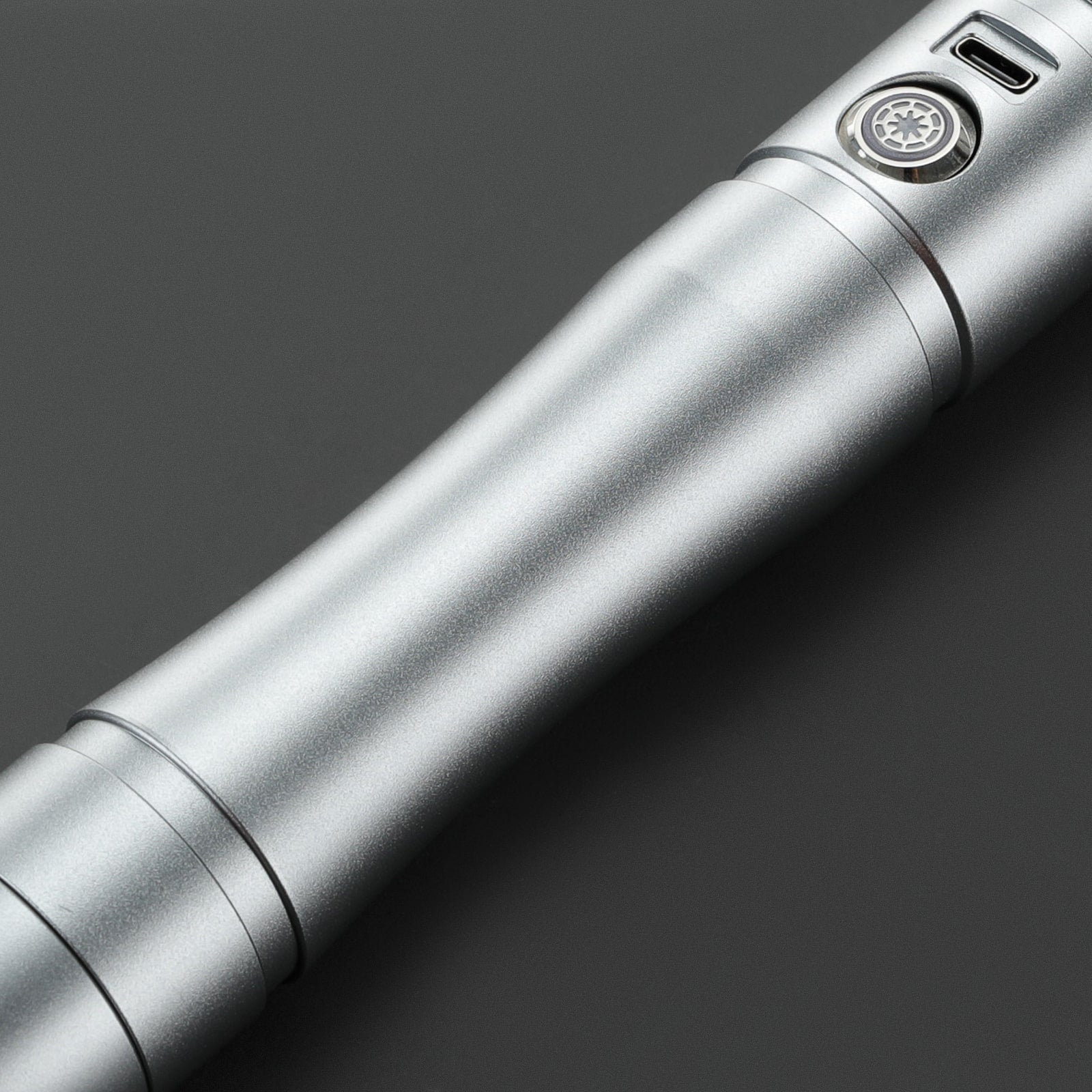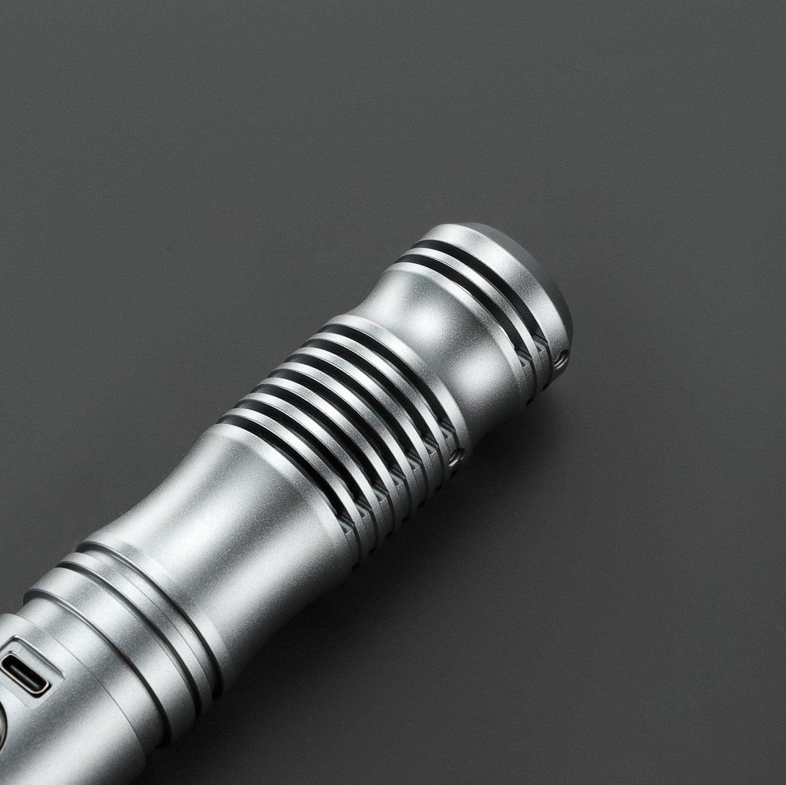 L'impugnatura di questa spada laser è realizzata in robusto alluminio ed è disponibile in due varianti di colore, nero opaco o argento/grigio scuro. L'impugnatura è leggera ma estremamente resistente. Il manico dell'Accolito ha un'impugnatura affusolata che lo rende comodo da tenere in mano. Il restringimento dell'impugnatura rende l'Acolyte ideale per lo spinning e adatto a mani piccole e grandi. Questo rende l'Acolyte particolarmente adatto all'uso quotidiano, alle rotazioni morbide e ai movimenti veloci.