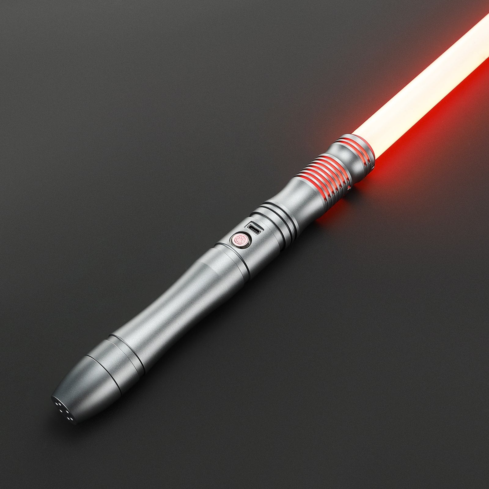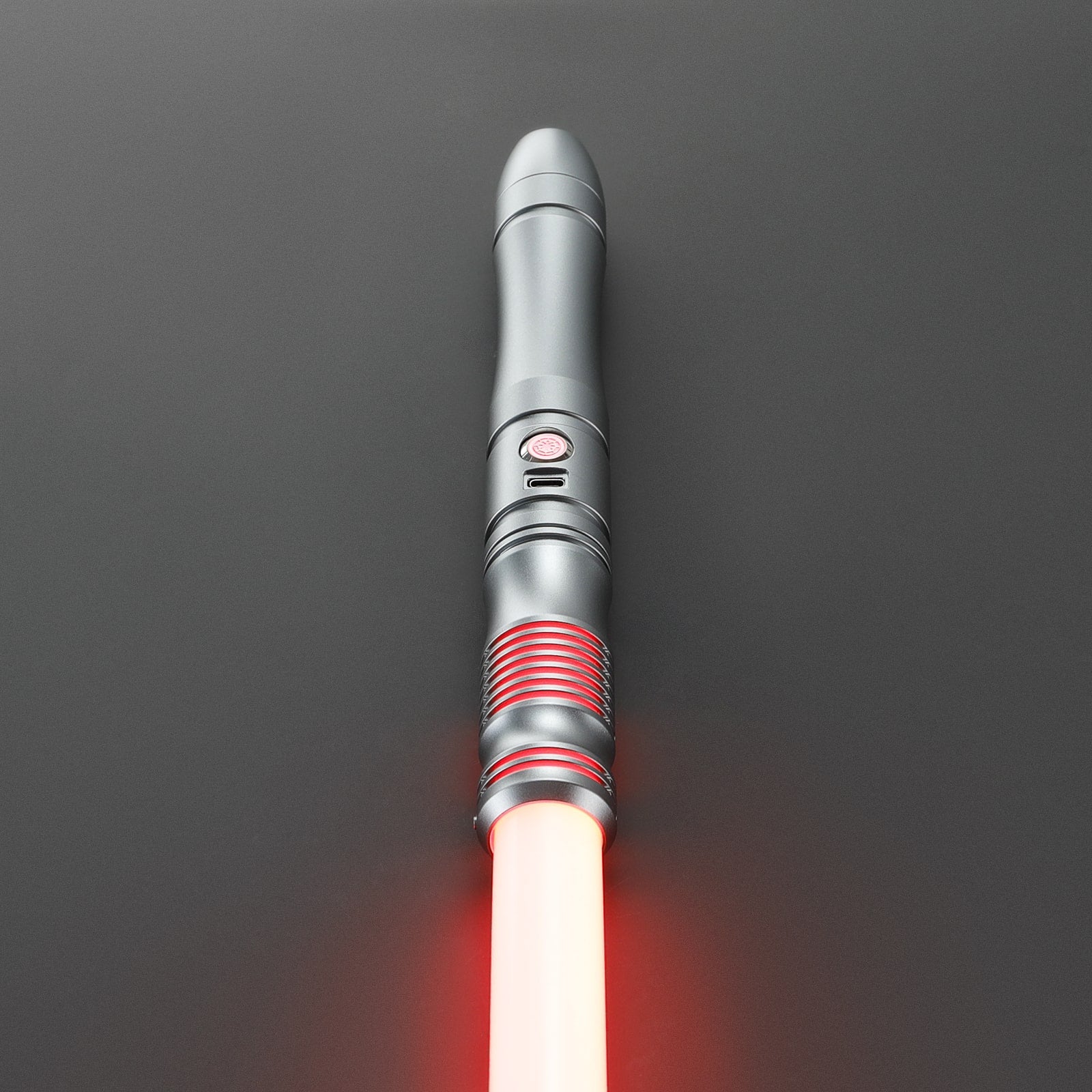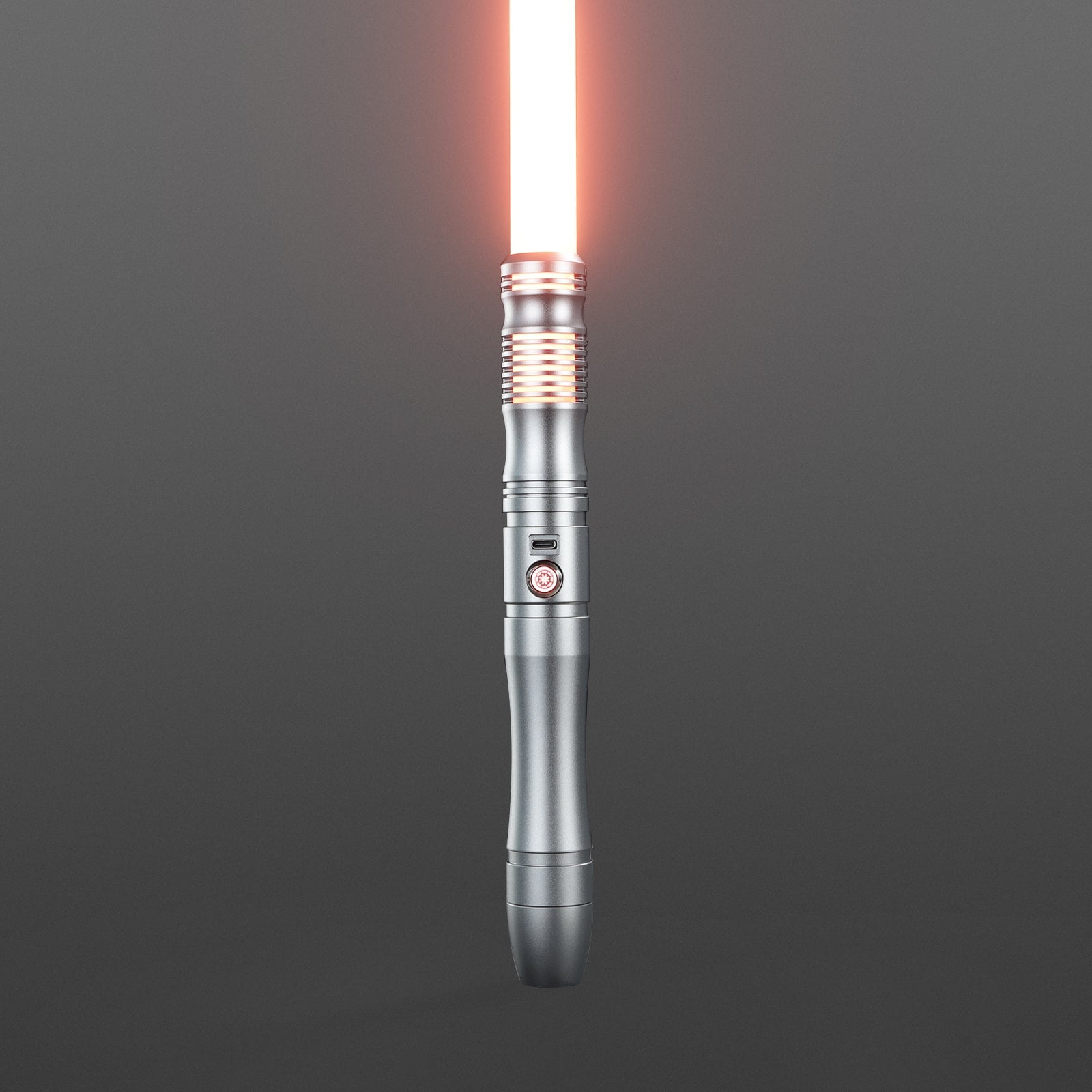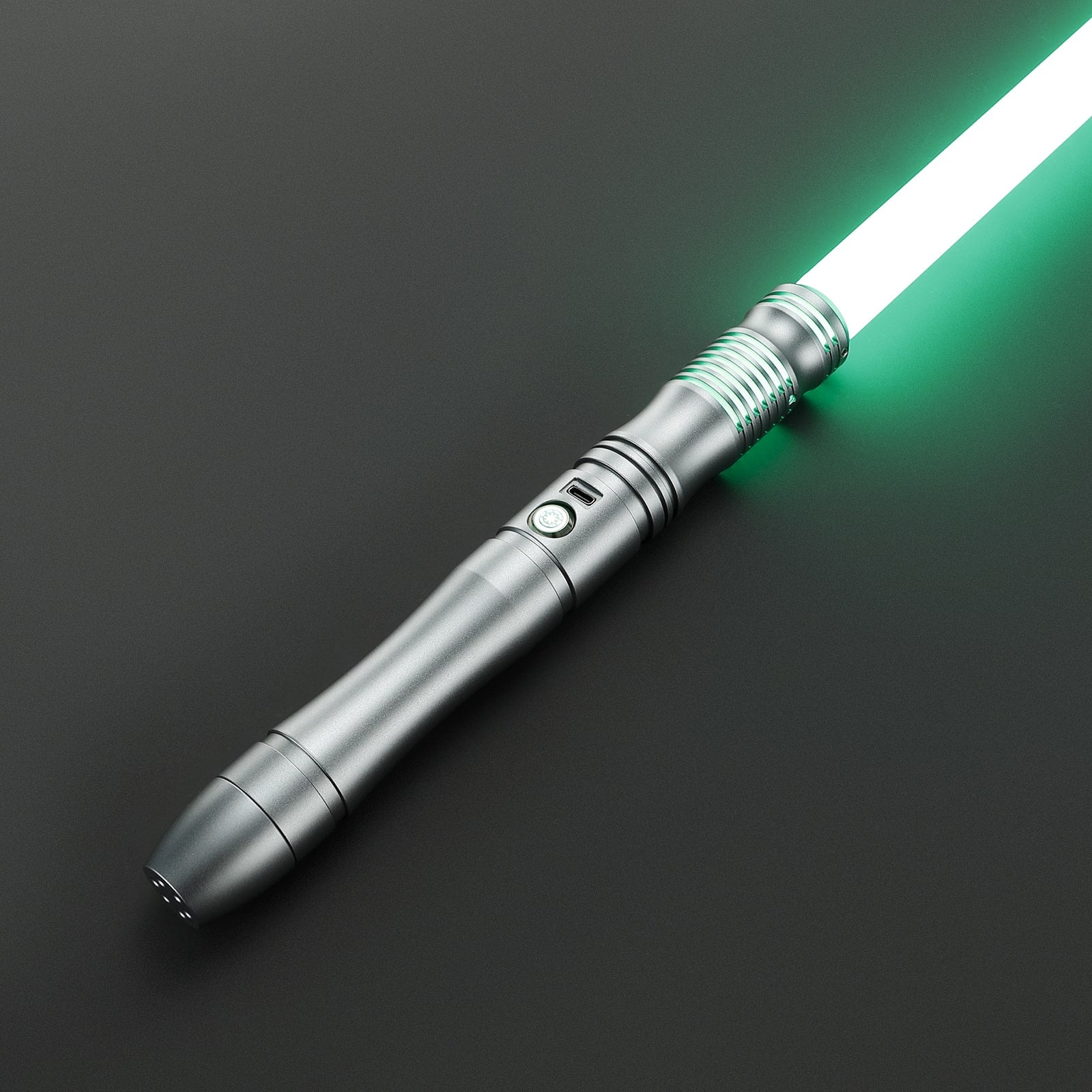 L'impugnatura di questa spada laser è realizzata in robusto alluminio ed è disponibile in due varianti di colore, nero opaco o argento/grigio scuro. L'impugnatura è leggera ma estremamente resistente. Il manico dell'Accolito ha un'impugnatura affusolata che lo rende comodo da tenere in mano. Il restringimento dell'impugnatura rende l'Acolyte ideale per lo spinning e adatto a mani piccole e grandi. Questo rende l'Acolyte particolarmente adatto all'uso quotidiano, alle rotazioni morbide e ai movimenti veloci.