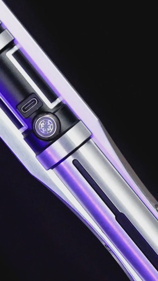 The handle of the Reaper is made of a sturdy brushed aluminum handle and features horizontally attached spikes. The black accents against the brushed aluminum gives this lightsaber a realistic and high-quality look. The lightsaber sits smoothly in the hand and has a very good weight balance. Is ideal for cosplay and dueling. But also perfect to display as a trophy in your home!